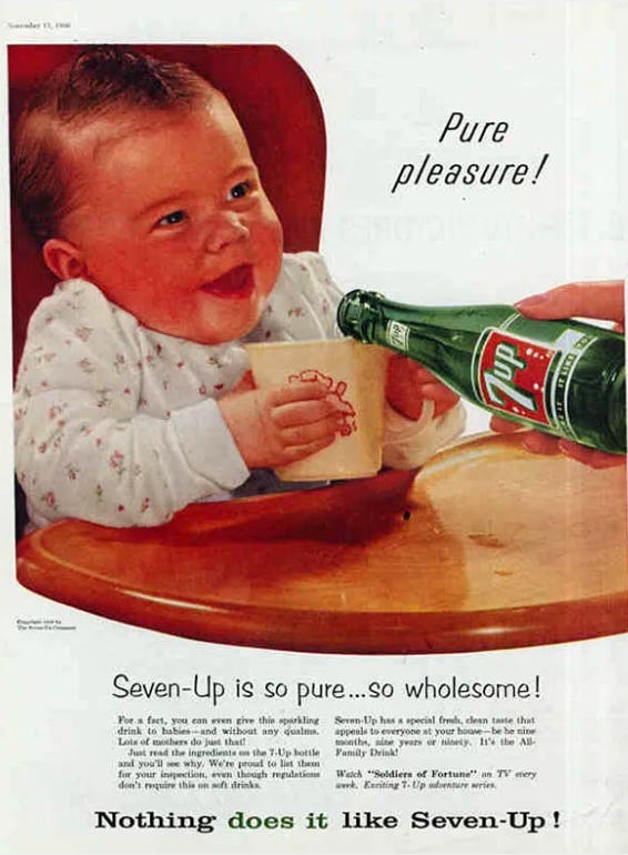 If you are old enough, you’ll remember when 7-up was GOOD for children and cigarettes were recommended by your doctor. There was a time in the UK especially where if you went to talk to your doctor, there was the likelihood he had a cigarette lit as you spoke. I even have a distant memory of my grandmother, being told, when pregnant, that an extra cigarette or two a day, would help “calm her nerves.”